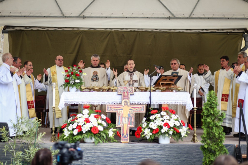 Majd tágabb horizontot vetítve a hívek elé emlékeztetett rá, hogy rendtársaik jelen vannak a Szentföldön, a Közel-Keleten is, ahol sok a szenvedés.
