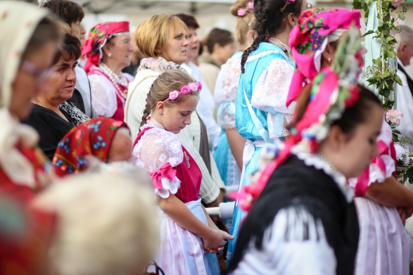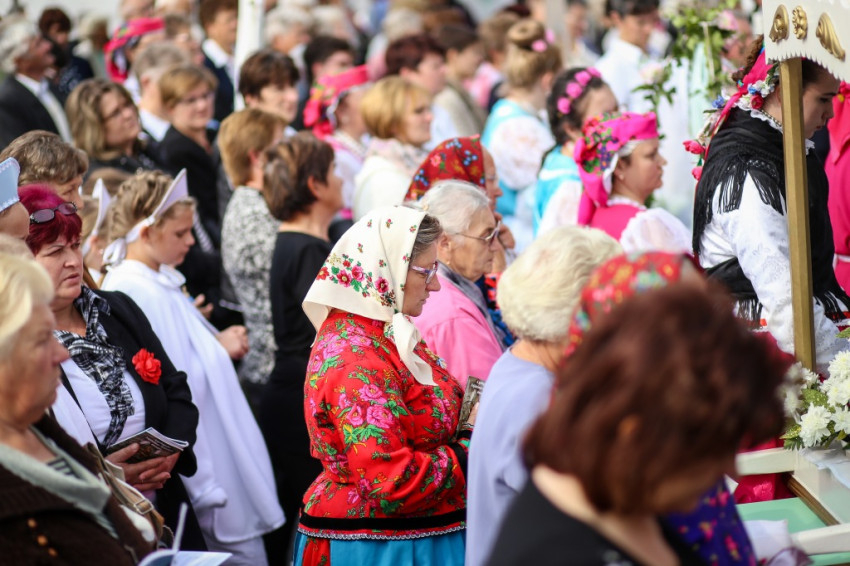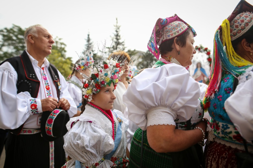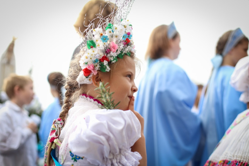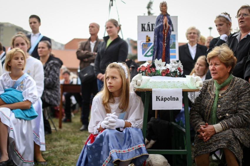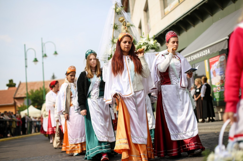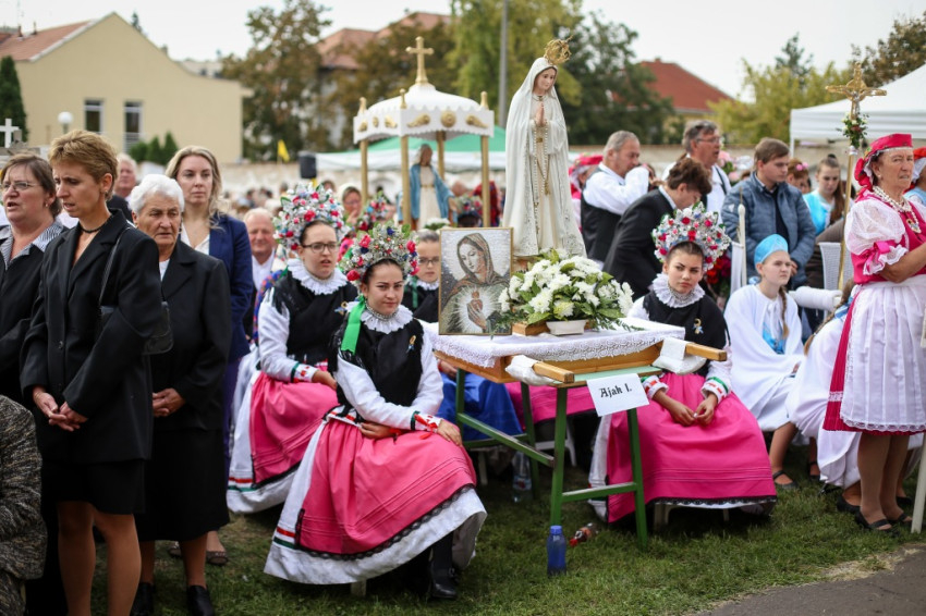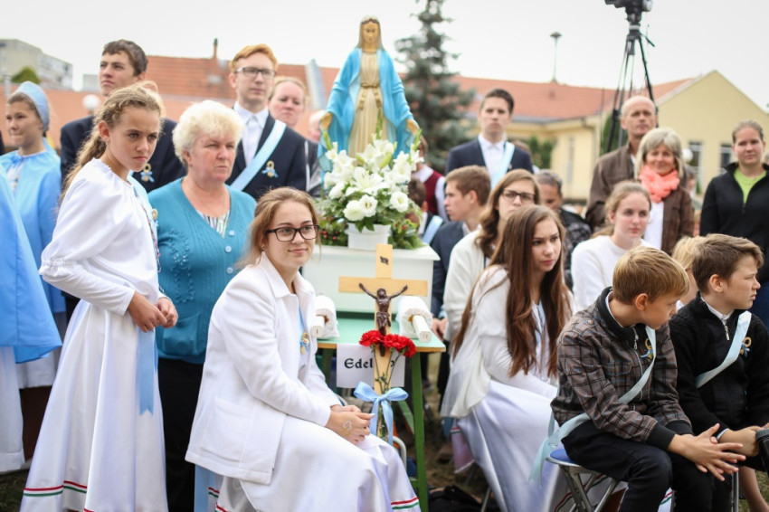 A vasárnapi program reggel hat órakor zsolozsmával kezdődött. A tízórás szentmise előtt a Mária-szobrot hordozó, több mint ötven zarándokcsoport a templom melletti téren felállított oltár előtt vonult fel, majd az oltár két oldalán helyezték el a szobrokat, a hívek énekei kíséretében.