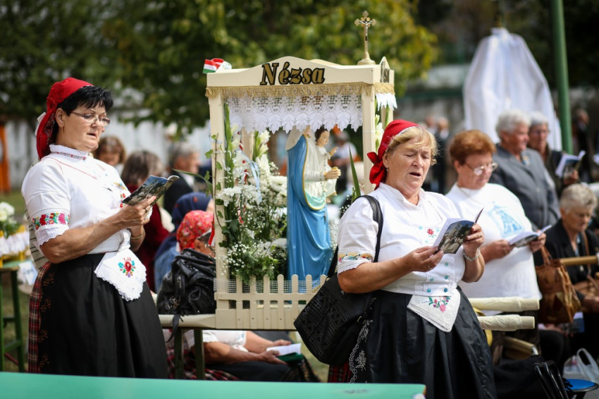 Az ünnepi szentmisét a szabadtéri oltárnál, a mintegy hatezer zarándokkal zsúfolásig megtelt téren celebrálta Dobszay Benedek ferences tartományfőnök, aki bevezető szavaival arra hívta fel a figyelmet, hogy Szűz Máriát kitüntette az Úr a szenvedéssel, azzal, hogy ott állhat a kereszt alatt. A tartományfőnök arra buzdított a híveket, gondolják át, mit jelent ez, és kérjék az Úrtól, hogy megnyugvással tudják elfogadni a szenvedést, amely – mint az Úr kegyelmének a lehetősége – értelmet nyer.