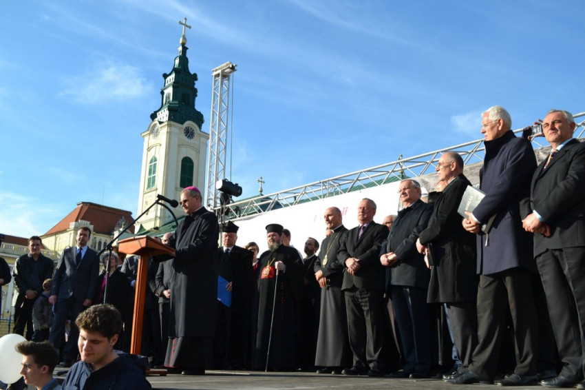 A demonstráción, amit A Családért Koalíció nevű civil szervezet szervezett, a római katolikus, a görögkatolikus, az ortodox, a pünkösdista, a református, az evangélikus, a baptista és az adventista egyház is képviseltette magát, valamint a Messiás-hívők közösségének rabbija is jelen volt. A négy nagyváradi püspök, Sofronie Drincec ortodox, Böcskei László római katolikus, Csűry István református és Virgil Bercea görögkatolikus főpásztor mellett politikusok is felszólaltak a rendezvényen, a liberális Cornel Popa, a szociáldemokrata Ioan Mang és az ALDE képviseletében Traian Bodea.