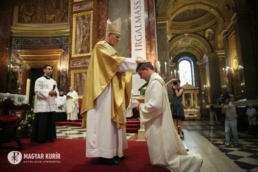3. A papszenteléskor különleges módon részesülünk magának Krisztusnak a hármas küldetésében: prófétai, papi és pásztori feladatot kapunk. A felszentelt pap a szentmisében egyes szám első személyben mondja ki az átváltoztatás szavait, Jézus személyében cselekszik. Jelenvalóvá tesszük Isten kegyelméből Krisztus áldozatát, személyünkben ő maga akar eljutni minden kor minden emberéhez. Ezért olvassuk az evangéliumban, hogy Jézus elküldte tanítványait azokba a helységekbe, ahová menni akart (Lk 10,1). A mi szolgálatunkon keresztül is ő akar az emberekhez fordulni. Ez pedig számunkra egyszerre nagy felelősség és csodálatos hivatás, hiszen azt kell adnunk az embereknek, ami a legfontosabb, ami a leglényegesebb ezen a világon. A részleteket illetően minden hivatás a maga módján teszi szebbé, kellemesebbé, biztonságosabbá az emberek életét. A nagy művészek és a nagy gondolkodók még az élet egészéről, a létünk értelméről is tudnak szépet és igazat mondani. De a pap hivatása még ennél is többre szól: mi nemcsak beszélünk Istenről és a világról, hanem szentségi szolgálatunk révén személyes szeretetkapcsolatot tudunk építeni Isten és az emberek között. Valódi hídverőnek, pontifexnek kell lennünk! Ennek a küldetésnek az áldott és örömteli elfogadását és teljesítését kívánom újonnan szentelendő testvérünknek, mindannyiunk javára! Ámen.