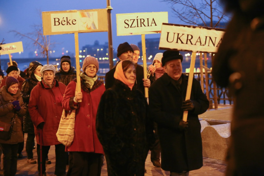 A felvonulás 17 órakor kezdődik a fővárosban, a Szabadság-híd pesti hídfőjénél, az alsó rakparton, Boldog Salkaházi Sára emléktáblája alatt. Innen vonulnak fáklyákkal és a háborútól szenvedő országok neveivel az egyetemi (Kisboldogasszony-) templomhoz (Budapest V., Papnövelde u. 5–7.), ahol 18 órakor ökumenikus imádság kezdődik a békéért, a háborúban szenvedő országokért, Bíró László katolikus tábori püspök vezetésével.