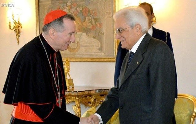 A február 3-án megválasztott Mattarella március 25-én, szerdán hivatalos reggeli keretében fogadta Pietro Parolin vatikáni bíboros államtitkárt és a februári konzisztóriumon kreált új olasz bíborosokat: Francesco Montenegro agrigentói érseket és Edoardo Menichelli anconai érseket.