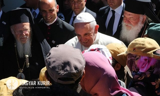 Köszönetet mondok azoknak, akik imájukkal kísérték tegnapi látogatásomat Leszbosz szigetén, Görögországban. A menekülteknek és a görög népnek elvittem az egyház szolidaritását. Velem volt Bartholomaiosz ökumenikus pátriárka, valamint Athén és egész Görögország érseke, Hierónümosz, hogy kifejezzük az Úr összes tanítványának szeretetben való egységét. Meglátogattuk az egyik menekülttábort: a menekültek Irakból, Afganisztánból, Szíriából, Afrikából, sokféle országból érkeztek. Mintegy háromszáz menekültet üdvözöltünk, egyesével. Mindhárman, Bartholomaiosz pátriárka, Hierónümosz érsek és én. Sok gyermek volt köztük; némelyik – e gyermekek közül – tanúja volt szülei és társai halálának, a tengerbe fulladtak. Sok fájdalmat láttam! Szeretnék elmesélni egy különleges esetet, egy olyan fiatalemberét, aki még nincs negyvenéves. Tegnap találkoztam vele, ott volt mellette két gyermeke is. Ő muszlim, és elmesélte nekem, hogy egy keresztény lányt vett feleségül, akivel szerették és tisztelték egymást. De sajnos ennek a lánynak a terroristák elvágták a torkát, amiért nem volt hajlandó megtagadni Krisztust és elhagyni hitét. Ő vértanú! És az a férfi vigasztalhatatlanul sírt…