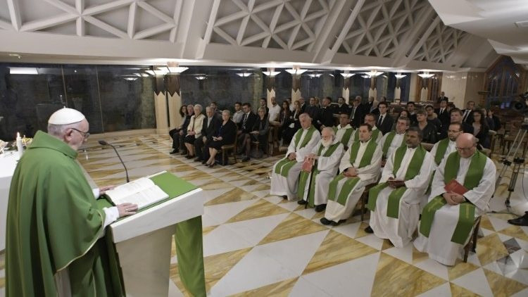 Szemlélődés és szolgálat: ez a mi életünk útja. Gondoljuk végig mindannyian: Mennyi időt töltök naponta Jézus misztériumának szemlélésével? És aztán: Hogyan dolgozom? Annyit dolgozom, hogy az már elidegenít? Vagy úgy végzem a munkám, hogy hű maradok a hitemhez, hogy szolgálom az evangéliumot? Jót fog tenni nekünk, ha ezt végiggondoljuk – buzdított kedd reggeli homíliájában a Szentatya.