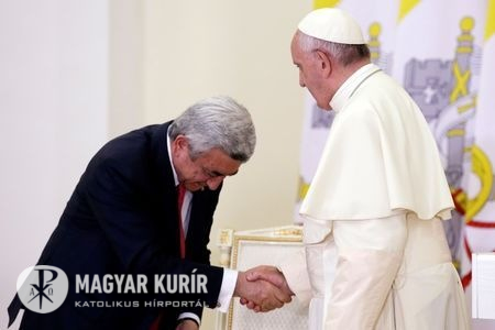 A katolikus egyház, mely korlátozott erőivel, de jelen van az országban, örömmel nyújt segítséget az ország felvirágoztatásához, a gyengébbek és szegényebbek neveléséhez, az egészségügyben és a karitászban, amint azt az asocki Redemptoris Mater-kórház, a jereváni oktatási intézmény és az örmény karitász művei mutatják. Isten áldja meg Örményországot, ezt a hittől, a vértanúk bátorságától és minden fájdalmas emberi reménységtől megvilágosított földet!” – zárta beszédét a pápa az örmény elnöki palotában, az ország politikai és egyházi vezetői előtt.