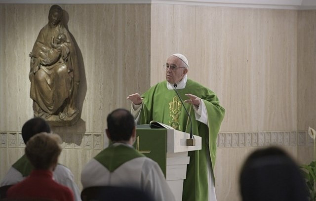 Az evangélium tehát azt a kérdést veti fel, hogy miként, hogyan imádkozzunk – folytatta a pápa. – Ne imádkozzunk papagáj módjára, mintegy érdektelenül az iránt, amit egyébként kérünk! Kérjük az Urat, hogy segítse a mi kicsiny hitünket, még a nehézségekkel szemben is. Számos történet van az evangéliumban, amikor a bajban lévőnek nehéz az Úr közelébe férkőznie. Ezért is segít bennünket ez a példa. A bénát, a mai evangélium tanúsága szerint, a tetőn keresztül engedik le, csak hogy a hordágya az Úrhoz elérjen, aki éppen hatalmas tömeget tanít. Az akarat megoldást talál, mert túllép minden akadályon – emelte ki a pápa.