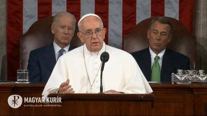 A Laudato si’ kezdetű enciklikában bátor és felelős erőfeszítésre buzdítok, hogy „irányt változtassunk” (uo., 61.), és elkerüljük az emberi tevékenység által okozott környezeti pusztulás legsúlyosabb következményeit. Meg vagyok győződve, hogy képesek eltérően cselekedni, és nincs kétségem afelől, hogy az Egyesült Államok – és ez a Kongresszus – fontos szerepet játszik ebben. Eljött a bátor tettek és a közvetlen stratégiák ideje, hogy meghonosítsuk a „gondoskodás kultúráját” (uo., 231.) és az „átfogó megközelítést, hogy legyőzhessük a szegénységet, visszaadhassuk a kirekesztettek méltóságát, és ezzel egyidejűleg gondját viselhessük a természetnek” (uo., 139.). Megvan a szükséges szabadságunk, hogy korlátozzuk és irányítsuk a technológiát (vö. uo., 112.), hogy kitaláljunk értelmes módokat arra, „hogyan irányítsuk, gyakoroljuk és korlátozzuk hatalmunkat” (uo., 78.), és hogy a technológiát „egy másfajta, egészségesebb, emberségesebb, szociálisabb, átfogóbb haladás szolgálatába állítsuk” (uo., 112.). E tekintetben bízom abban, hogy az amerikai kutató- és akadémiai intézmények jelentősen hozzá tudnak ehhez járulni az elkövetkező években.