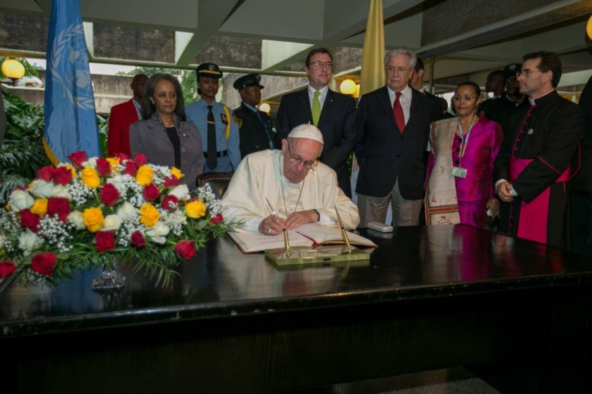 Beszéde végén biztosította az ENSZ munkatársait a katolikus egyház elkötelezettségéről és együttműködéséről annak érdekében, hogy a regionális együttműködés gyümölcsöket hozzon; hogy az afrikai kereskedelmi egyezményeket szigorúan betartsák, és mindig szem előtt tartsák a közjót.