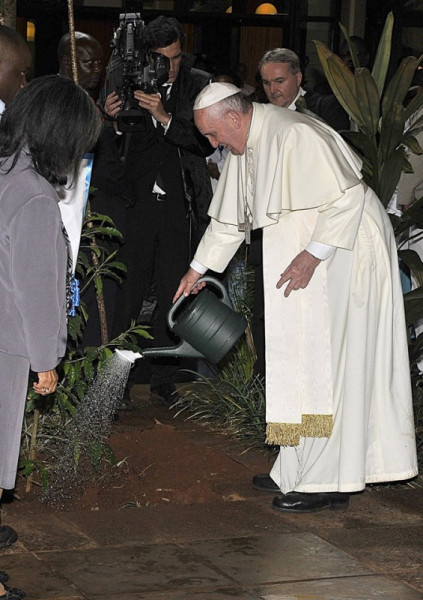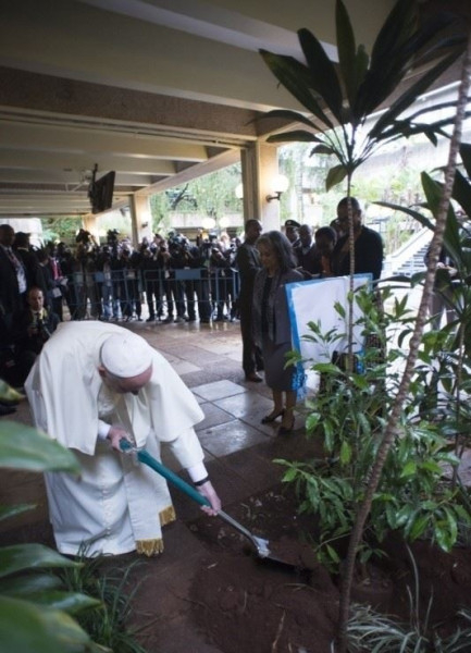 A pápa a faültetés jelentőségteljes gesztusából indult ki beszédében. Hangsúlyozta, ez arra hív minket, hogy folytassuk a küzdelmet az erdőirtás és az elsivatagosodás ellen; továbbá arra ösztönöz, hogy bizakodjunk, és konkrétan vállaljunk elkötelezettséget az igazságtalanság és a pusztulás átalakítása iránt.