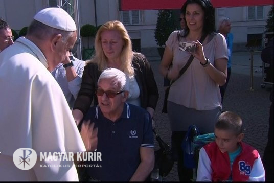 A Szentatya egyenként köszöntötte és megáldotta a jelen lévő betegeket, majd beszédet intézett hozzájuk.