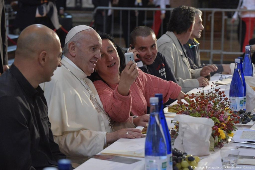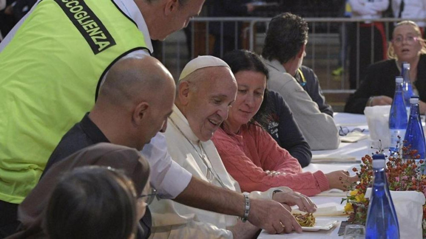 Ferenc pápa a San Petronio-bazilikában ebédelt, ahol ezer szegénynek terítettek ünnepi asztalt. A Caritas által szervezett ebéden Olaszország negyedik legnagyobb székesegyházában 1400 szegény, beteg ember vett részt, köztük fogvatartottak és menekültek.