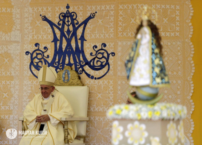 Mária megtanított bennünket, hogy minden helyzetben, számtalan nehézség közepette is az Úr velünk van, miként az angyali üzenet szerint ővele volt: „Az Úr van teveled! Ne félj, Mária!” És Mária mindig azt mondja, amit a kánai menyegzőn: „Tegyétek, amit mond!” Ferenc pápa szó szerint így folytatta: „Ti tudjátok, megtapasztaltátok, amit most megosztunk. Ti valamennyien, minden paraguayi elevenen emlékezik arra a népre, amely megtestesítette az evangéliumnak ezeket a szavait. És különösen is utalni akarok rátok, asszonyokra és paraguayi anyákra, akik nagy bátorsággal és önmegtagadással talpra tudtátok állítani a háború által lerombolt, mélyre süllyedt országot. Nálatok van az emlékezet, a genetikai öröksége azoknak, akik újraépítették az életet, a hitet, népetek méltóságát.