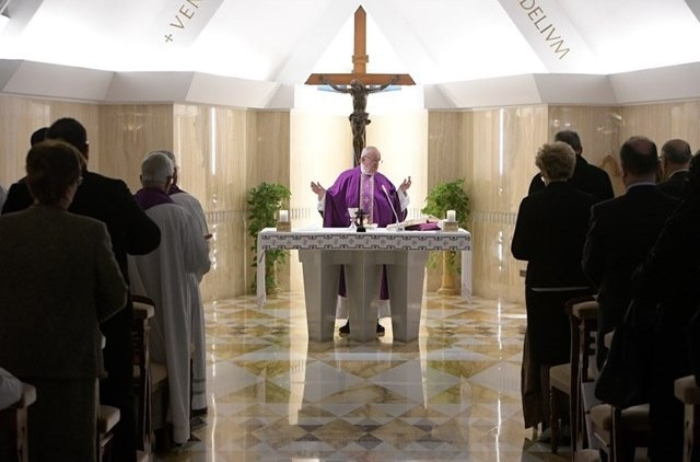 Jézus nem rója meg, hanem azt mondja neki: „Kelj föl, vedd ágyadat, és járj!” A béna meggyógyul, de mivel mindez szombaton történt, a törvénytudók azt mondják, hogy nem szabad hordoznia ágyát, és tudakolják tőle, ki gyógyította meg ezen a napon. „Szabályellenes, és aki ezt tette, nem Istentől való ember.” A béna még köszönetet sem mondott Jézusnak, meg se kérdezte, hogy hívják – jegyezte meg a pápa. Lustasággal kelt föl, azzal a hozzáállással, hogy „élek, mert a levegő ingyen van”, azzal az attitűddel, hogy mindig másra nézek, azokra, akik boldogabbak nálam, ami elfeledteti az örömet. A restség olyan bűn, ami megbénít minket, bénává tesz. Nem hagy járni. Az Úr ma is ránk néz, mindannyiunkra, bűnösökre, mert mind azok vagyunk, de azt mondja: „Kelj föl!”