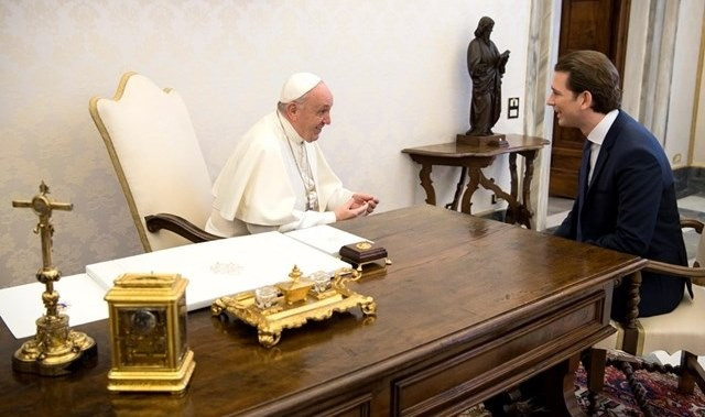 A Szentatya Kurz kancellárral folytatott több mint fél órás magánbeszélgetése során érintették az élet védelme, a család fontossága, a társadalmi közjó előmozdítása és a lakosság leggyengébb rétegeinek védelme témáit. Kitértek arra a szerepre, melyet Ausztria tölt be az Európai Unióban, a népek közötti szolidaritás szükségességére, a leszerelés fontosságára és végül a migráció kérdésére.