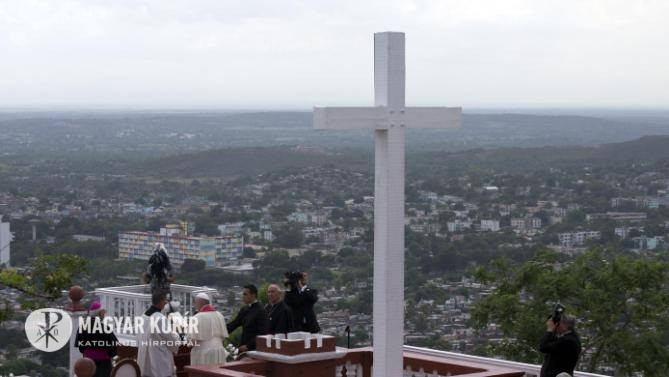 A hegy csúcsára helyezett Szent Keresztre tekintve kérte „a mindenható Istent, hogy világítsa meg a családok, a gyermekek, a fiatalok, a betegek és a szenvedők életét. Induljanak el Jézus nyomában, aki az egyetlen Út, amely az Istenhez vezet, és akinek a szeretete mindenkit magához vonz.”