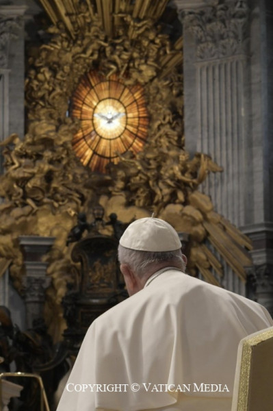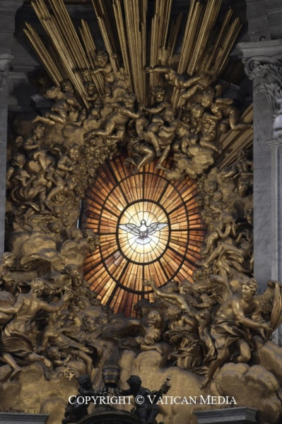 A hallott evangélium utolsó mondatában Jézus olyan kijelentést tesz, amely reményt ad, ugyanakkor elgondolkodtat. Azt mondja a tanítványoknak: „A Szentlélek, akit majd a nevemben küld az Atya, megtanít titeket mindenre, és eszetekbe juttat mindent, amit mondtam nektek” (Jn 14,26). Meglep bennünket ez a „mindenre”, ez a „mindent”; és feltesszük magunknak a kérdést: milyen értelemben adja a Lélek azoknak, akik befogadják őt, ezt az új és teljes megértést? Ez nem mennyiségi vagy tudományos kérdés: Isten nem enciklopédiát, nem tudósokat akar belőlünk csinálni. Nem. Ez minőség, perspektíva, megérzés kérdése. A Lélek azt teszi lehetővé, hogy mindent új módon, Jézus szemével lássunk. Ezt így fejezném ki: az élet nagy útján ő megtanítja, hogy honnan induljunk, milyen utakat válasszunk, és hogyan járjunk. A Lélek az, aki megmondja nekünk, honnan induljunk, milyen utat válasszunk, milyen stílusban járjunk.