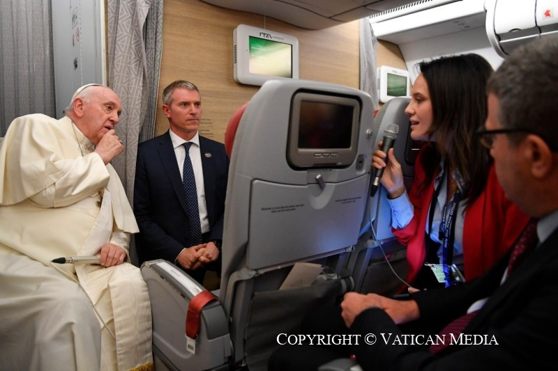 – Köszönjük, Szentatya, köszönjük, Ignazio. A következő kérdést Claire Giangravè újságíró teszi fel, aki a Religion News Service munkatársa.