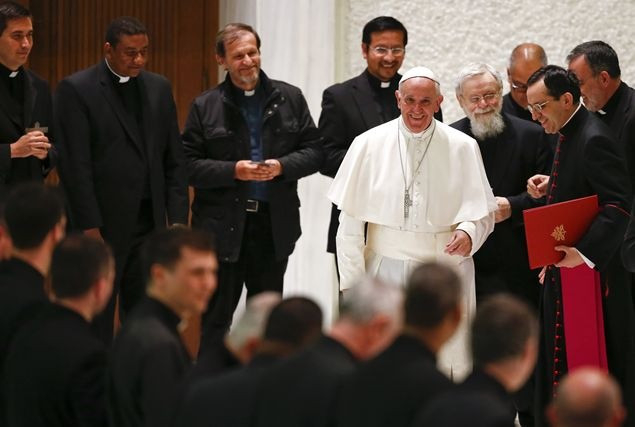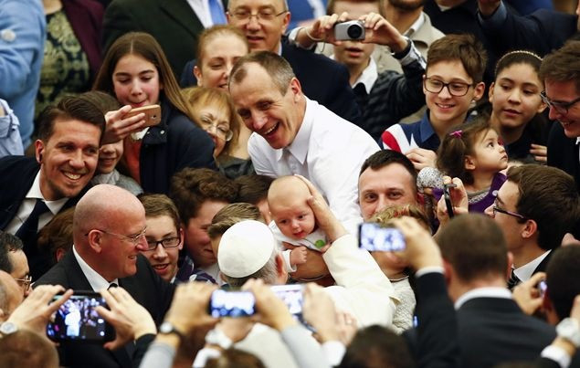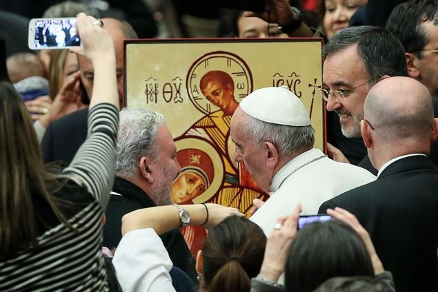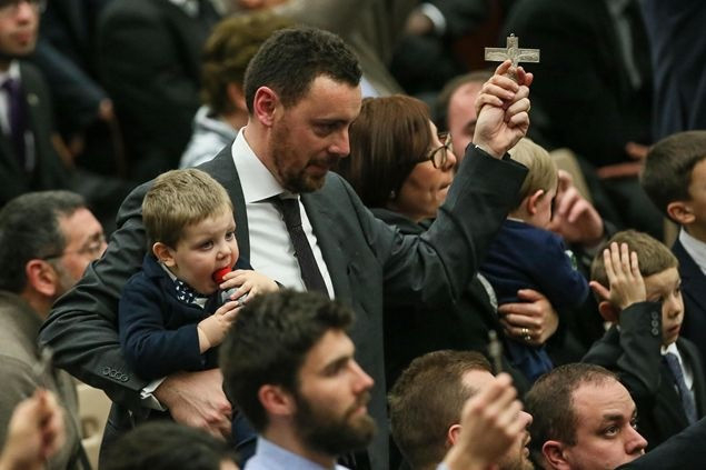 A terem teljesen megtelt a Neokatekumenális Út karizmatikus egyházi mozgalom képviselőivel, akik az alapító, Kiko Argüello vezetésével érkeztek. A misszionárius családok felálltak, amikor bejelentették célállomásukat. „Áldom az Urat ezért” – mondta Ferenc pápa a tapsvihar közepette, majd felhívta a figyelmet egy kockázatra. Az ördög megkísérthet minket, hogy azt higgyük, talán mi jobbak vagyunk másoknál. Olyan kísértés ez, amely a legszebb karizmákba is belopakodhat. Minden karizma Isten kegyelme, hogy növelje a szeretetközösséget. A karizma azonban elvesztheti erejét, ha bezárkózik vagy büszkévé válik, amikor meg akarja különböztetni magát másoktól. Ezért óvni kell. Óvjátok karizmátokat! – buzdított a Szentatya. Hogyan? Követve a kijelölt utat: az alázatos és engedelmes egységet.
