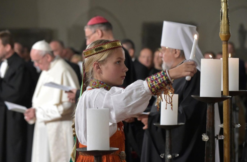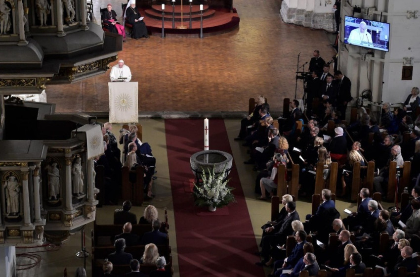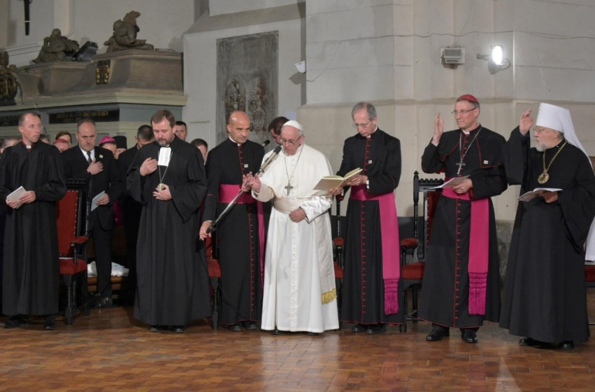 Köszönöm Jānis Vanags érseknek, hogy megnyitotta előttünk e ház kapuját, hogy megtarthassuk imatalálkozónkat. Ez a „székesegy-ház”, mely több mint nyolcszáz év óta látja vendégül e város keresztény életét, hűséges tanúja annak, hogy sok testvérünk jött ide imádkozni, Istent imádni, fenntartani a reményt a szenvedésekkel teli időkben és bátorságra lelni az igazságtalansággal és fájdalommal teli időkkel való megbirkózáshoz. Ma minket lát vendégül ez a ház, hogy a Szentlélek „kétkezi munkásként” a közösség kötelékeit szője közénk, és ezáltal minket is az egység „kétkezi munkásaivá” tegyen a ránk bízottak között, hogy a különbözőségek ne okozzanak szakadásokat. Engedjük, hogy a Szentlélek felvértezzen minket a párbeszédnek, a megértésnek, a kölcsönös tisztelet és a testvériség keresésének fegyvereivel (vö. Ef 6,13–18).