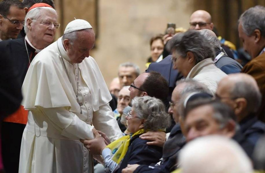 Igen, kevesen vagyunk, kisebbségben vagyunk, idősek vagyunk – de elutasítjuk a beletörődést. A belenyugvás jó ellenszere az irgalmasság, amely felüdít és békét nyújt. Jót tesz továbbá, ha lelki zarándoklatot tesznek a rend eredetéhez. Az emlékezet ugyanis megment bennünket egy dicsőséges, de irreális múlt képétől – folytatta a pápa.
