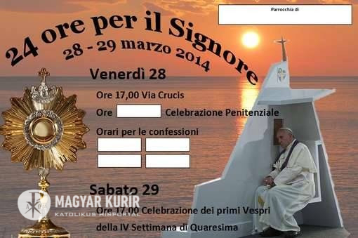 A pápa továbbá meghirdette: március 28-án és 29-én, jövő pénteken és szombaton különleges bűnbánati napot tartunk, amelynek neve: 24 óra az Úrért. A bűnbánati nap pénteken délután kezdődik a Szent Péter-bazilikában, majd este és (Róma központjában, egyes templomokban) éjjel is lehet a bűnbánat szentségéhez járulni. Ez a bűnbocsánat ünnepe lesz, amelyet a világ számos egyházmegyéjében és plébániáján megtartanak. A bűnbocsánatot, amelyet az Úrtól kapunk, meg kell ünnepelnünk, mint ahogy a tékozló fiú példabeszédében az apa tette. Amikor fia hazatért, elfeledte minden bűnét és nagy ünnepséget rendezett számára. Ez a megbocsátás ünnepe lesz.