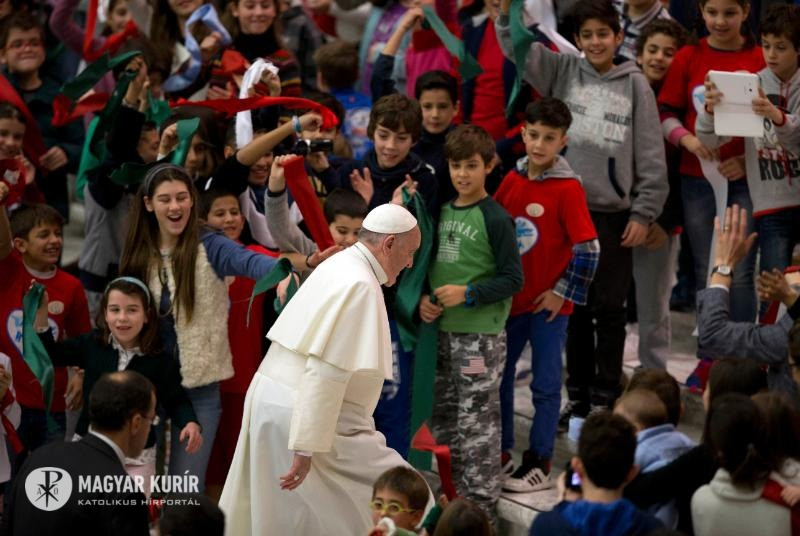 Szeretetetek legszebb gyümölcseit hoztátok ma el ide. Az anyaság és az apaság Isten ajándékai, de az ajándékot elfogadni, a társadalomban fölmutatni csodás szépségét – ez a ti feladatotok. Minden egyes gyermeketek egyedülálló teremtmény, akiből nem lesz újabb soha az emberiség történetében. Ha megértitek ezt, vagyis hogy mindnyájatokat Isten akarta, elámulhattok, hogy milyen nagy csoda is egy gyermek! Egy gyermek megváltoztatja az életet! Mi mindannyian láttuk – nők és férfiak –, hogy amikor egy gyermek érkezik közénk, az élet megváltozik, más lesz. Egy gyermek olyan csoda, amely megváltoztatja az életet! Ti, fiúk és lányok, éppen ezek vagytok: mindnyájatok a szeretet egyedülálló gyümölcse, szeretetből születtetek és nevelkedtek. Egyedülállóak vagytok, de nem vagytok egyedül! A tény, hogy vannak fiú- és leánytestvéreitek, javatokra válik: egy nagycsalád fiú- és leánygyermekei sokkal inkább képesek a testvéri közösségre már csecsemőkoruktól kezdve. Egy olyan világban, amelyet inkább az egoizmus jellemez, a nagycsalád az összetartozás és az osztozás iskolája; ez a hozzáállás később az egész társadalom javára lesz.