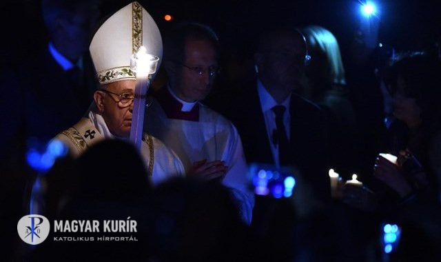 Péterhez és az asszonyokhoz hasonlóan mi sem találhatjuk meg az életet, ha szomorúak, reménytelenek maradunk, ha önmagunkba zárkózunk. Nyissuk meg az Úr előtt lepecsételt sírjainkat – mindannyian tudjuk, melyek ezek –, hogy Jézus belépjen és életet adjon! Vigyük hozzá neheztelésünk köveit, múltunk terheit, gyengeségeink és elbukásaink sziklatömbjeit. Ő hozzánk akar lépni, mert szeretne kézen fogni minket, hogy kiszabadítson a szorongásból. De az első kő, amelyet a mai éjszaka el kell hengeríteni: a reménytelenség, amely magunkba zár minket. Az Úr mentsen ki minket ebből a szörnyű csapdából, abból, hogy remény nélküli keresztények legyünk, olyanok, akik úgy élnek, mintha az Úr nem támadt volna fel és az élet középpontjában problémáink állnának!