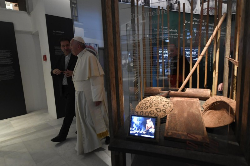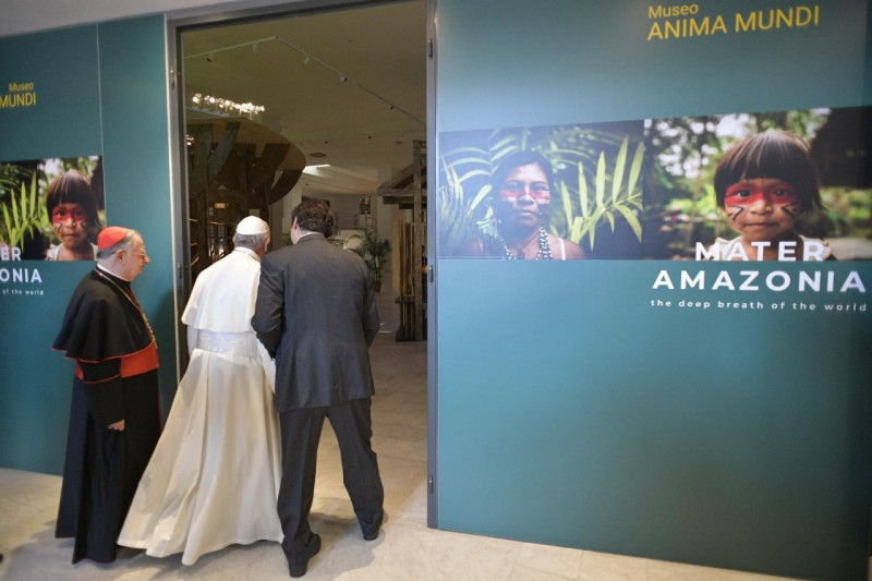 Beszéde végén Ferenc pápa elismeréssel szólt arról, hogy az új etnológiai múzeum megnyitását egybekapcsolták az Amazónia térségét bemutató kiállítás megnyitásával, éppen azokban a napokban, amikor az ennek a térségnek szentelt rendkívüli püspöki szinódus zajlik. A pápa hálát adott a térség missziós szerzeteseiért, akik személyében különféle karizmák találkoztak egymással Amazóniában.