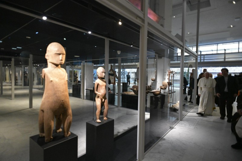 Az átláthatóság nagyon fontos érték, különösen egy egyházi intézményben. Erre nagyon nagy szükségünk van! – szögezte le a pápa. – Ezekben a tárlókban a világ minden tájáról érkezett tárgyak ezreit helyezik el, úgy, hogy egyfajta párbeszédben legyenek egymással. Minthogy a tárgyak a népek lelkületét fejezik ki, azt üzenik, hogy nemcsak minden kultúrára, hanem minden egyes embertársunkra is mindig a lélek nyitottságával és jóakarattal kell tekinteni.