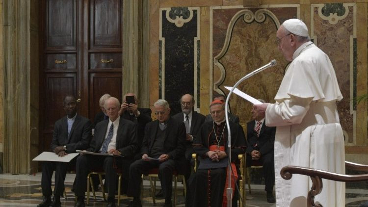 Személyes, örömteli alkalomnak nevezte beszéde kezdetén a pápa a Ratzinger-díj átadását. Üdvözölte a díjazottak megjelent rokonait és barátait is, valamint a díjat adományozó alapítvány elnökét, Angelo Amato bíborost. Hozzátette: „Örömmel tölt el, hogy ismételten elismerésemet és szeretetemet juttathatom kifejezésre elődöm, a szeretett emeritus XVI. Benedek iránt. Hálásak vagyunk neki tanításáért és példájáért, amit nekünk adott az Egyház szolgálata során, amikor töprengett, gondolkodott, tanulmányozott, meghallgatott, párbeszédet folytatott, imádkozott azért, hogy a hitünket élő módon őrizzük, figyelve az idők és a körülmények változására, és hogy a hívek számot vethessenek a hitükkel egy olyan nyelvezet segítségével, mely képes megértetni magát a kortársakkal és kapcsolatba lépni velük, hogy együtt keressék az Istennel való találkozás útjait a jelenkorban.”