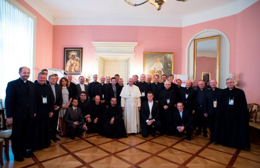 A pápa külön-külön üdvözölte a mintegy harminc jezsuitát, köztük a tartományfőnököket és három tanulórendtagot, és válaszolt néhány kérdésre. A jezsuita egyházfő apostoli látogatásai során mindig időt szakít a város vagy a provincia jezsuitáival való találkozásra. Különösen is hangsúlyozta az ignáci megkülönböztetést (a szellemek megkülönböztetését) a lelkipásztorkodásban.