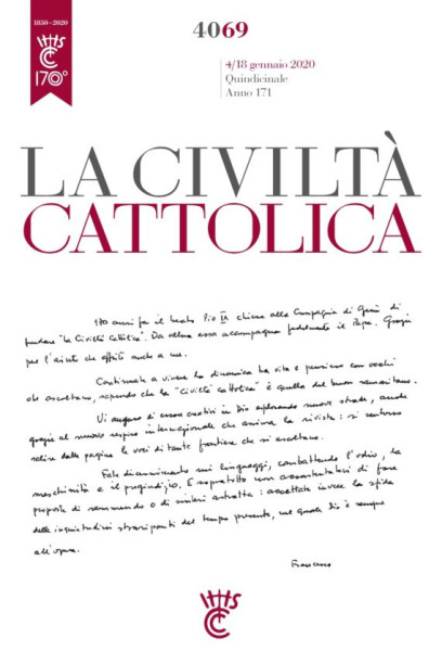 „170 évvel ezelőtt Boldog IX. Piusz pápa felkérte a Jézus Társaságát, hogy hozza létre a La Civiltà Cattolica folyóiratot. Azóta a lap hűségesen kíséri a pápát. Köszönöm az általatok nyújtott segítséget. Továbbra is éljétek meg az élet és a gondolat közötti dinamikát figyelmesen, tudva, hogy a katolikus civilizáció az irgalmas szamaritánus civilizációja. Azt kívánom nektek, hogy legyetek kreatívok Istenben és fedezzetek fel új utakat annak az új nemzetközi látószögnek köszönhetően, amely áthatja a folyóiratot: a lap oldalairól számos határvidék szava száll felfelé. Végezzetek megkülönböztetést a nyelvezet tekintetében, küzdjetek a gyűlölet, a szűklátókörűség és az előítéletek ellen. Mindenekelőtt ne elégedjetek meg azzal, hogy apró javítgatásokra vagy elvont összefoglalókra tegyetek javaslatokat. Inkább fogadjátok el jelen korunk számos aggodalmának kihívását, amelyben Isten mindig munkálkodik” – írja üzenetében Ferenc pápa, melyet a La Civiltà Cattolica jezsuita folyóirat alapításának 170. évfordulójára küldött.