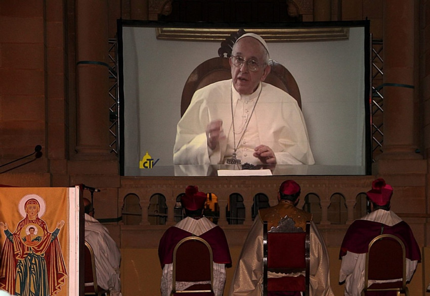 Üzenetében a pápa kiemeli, hogy örömmel fogadta Ta’ Pinu kegyhely mozaikjai megszentelésének hírét. „Jézus és Mária mozaikképe nagy öleléssel vár benneteket!” – fogalmazott a szentatya. Kifejezte: ezek az ábrázolások az egyszerű szemlélődő imádság szépségét tárják mindenki elé a kegyhelyen. Ferenc pápa az üzenetben megvallja, hogy ő is gyakran imádkozza a rózsafüzért egy kép előtt, melyen Máriát lehet látni a gyermek Jézussal. Úgy tűnik, mintha Mária lenne a középpontban, pedig az ő kezein – mint létrán – keresztül Jézust nyújtja felénk. A középpontban mindig Jézus áll, aki megalázza magát, és alászáll, hogy velünk, emberekkel együtt járjon, és így a mennybe emelkedhessünk hozzá – hangzott el a pápai videoüzenetben.