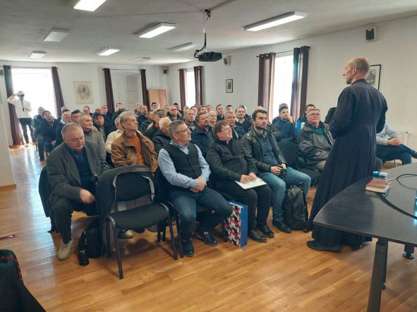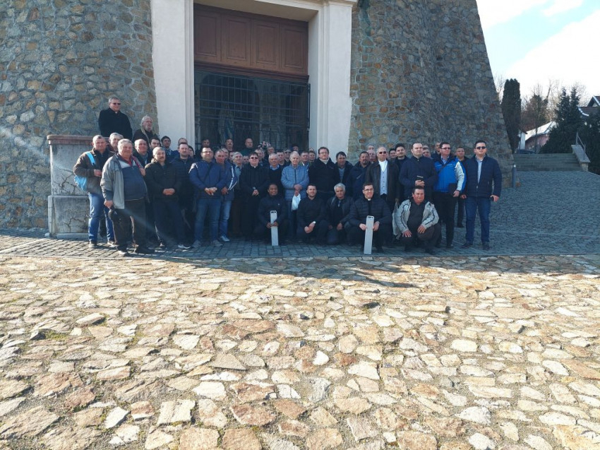 Böcskei László már várta a csapatot Máriaradnán, bevezette őket a kolostor előadótermébe, és hangsúlyozta: mivel a férfi döntő szerepet játszik a család életében, tudatában kell lennie annak, hogy nemcsak a családban, de az Egyházban is fontos szerepe van. Az a feladata, hogy rajta keresztül a hit üzenete eljusson minden emberhez.