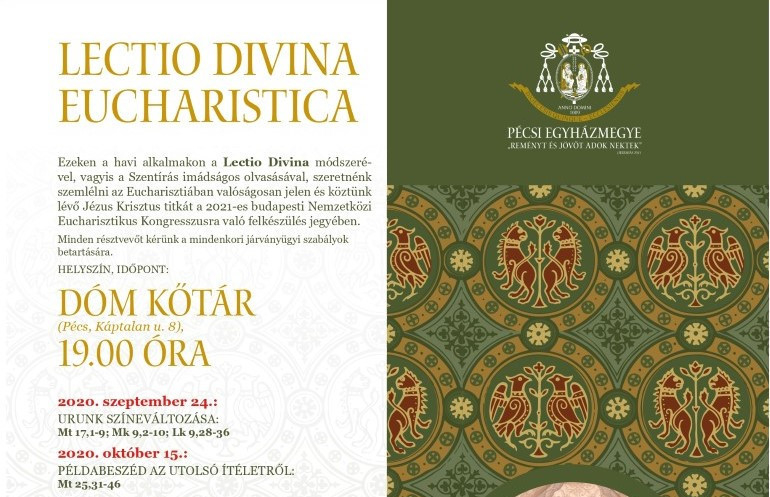 A Pécsi Egyházmegyében havonta egy alkalommal kerül sor a közös imádságos olvasásra, melyet Nyúl Viktor pasztorális helynök vezet. Az eseménysorozat minden alkalommal más-más bibliai történetet helyez középpontba.