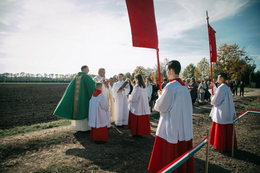 Az ünnep az öt testvérplébánia – Egyházasfalu, Keresztény, Und, Zsira és Sopronhorpács – közös búzatáblájánál folytatódott, ahova imádkozva, körmenetben érkeztek a hívek. Veres András megáldotta a földet és a búzaszemeket, majd elvetette azokat, hogy termésükből jövőre ostya készülhessen.