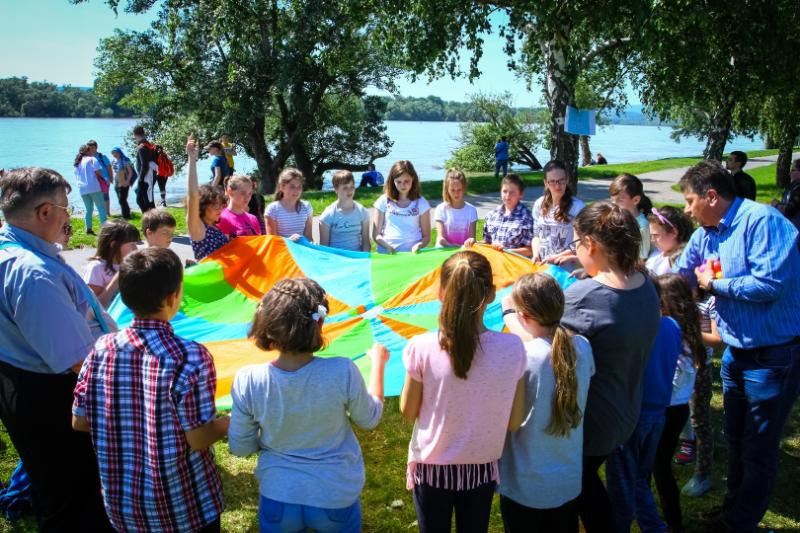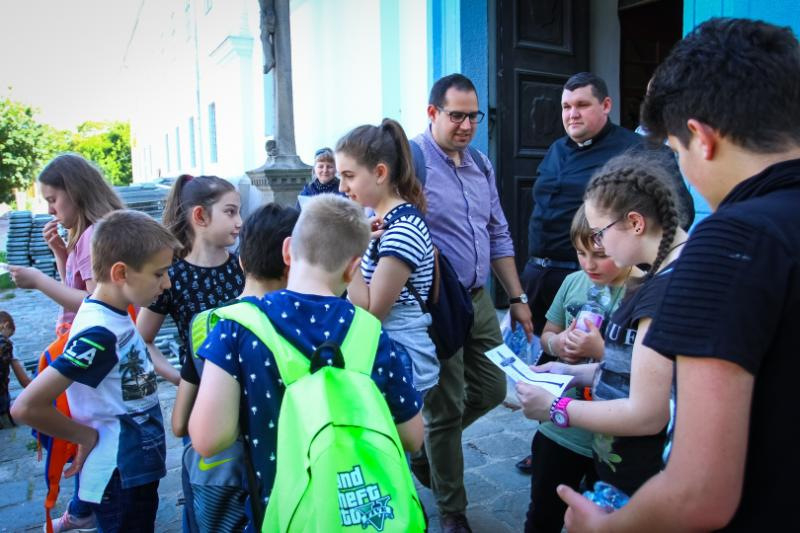 A szentmise után a zarándok gyerekek megtekintették a templomot, majd ebéd után felmentek a Fáy-présházhoz, hogy a táj szépségében gyönyörködhessenek. A program ezután Vácon folytatódott: Szarvasné Vancsura Margit egyházmegyei NEK-asszisztens vezetésével „eucharisztikus akadályversenyt” rendeztek. A versengés után megismerkedhettek a hittanosok a váci Hétkápolna történetével a kápolna közösségének vendégszeretetét élvezve.