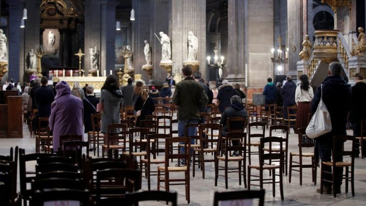 A francia elnök november 2-án függesztette fel a nyilvános szentmisék bemutatását. Az Államtanács döntését követően a francia templomokban november 29-től ismét megkezdődött a szentmisék bemutatása a hívek részvételével; egyes templomok internetes rendszert alakítottak ki a helyfoglalás kezelésére.