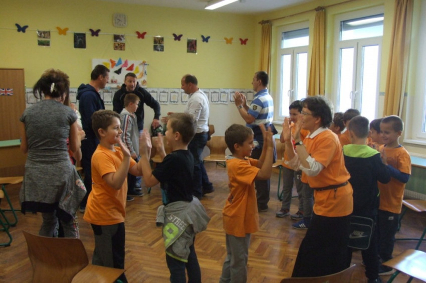 „Én a »váll, csípő, térd, boka« állomást vezetem. A lényege, hogy a szavak sorrendjében, egyre gyorsuló tempóban kell a mellettünk állót megérinteni. Szóval, kicsit megtornáztatom a résztvevőket. Nagyon élvezem a megbízatást és hogy én vezetem a felnőtteket is, akik elég ügyesek” – mesélte vidáman a hetedikes Burger Benedek.