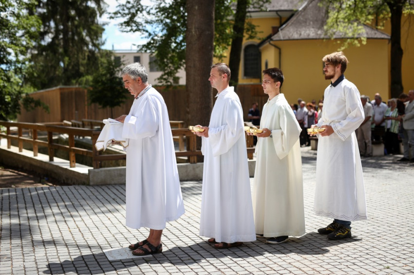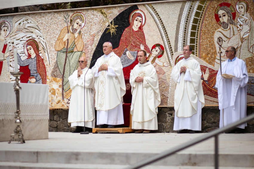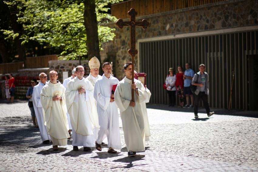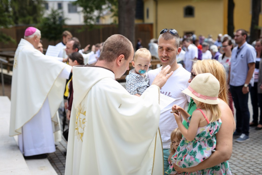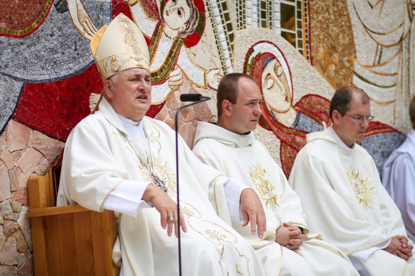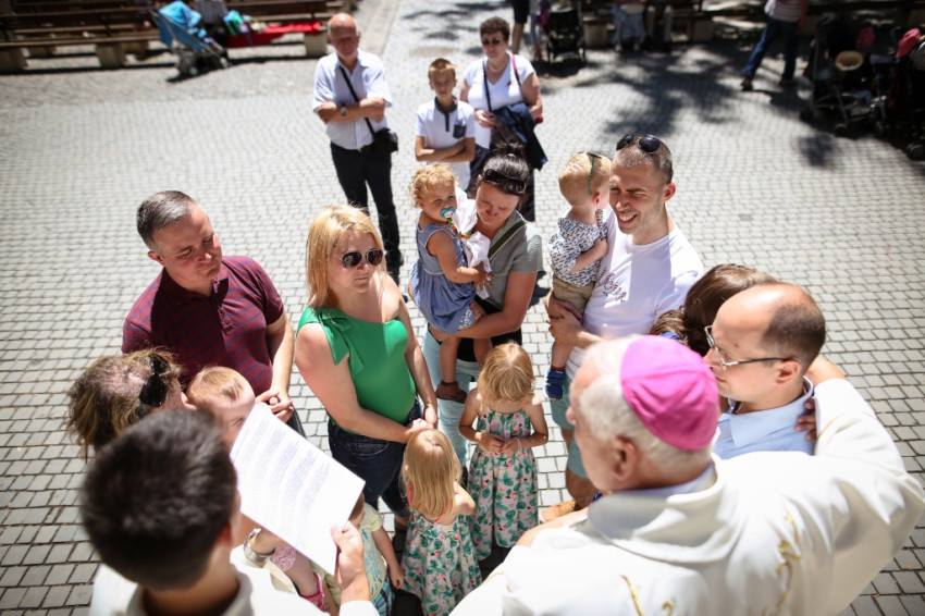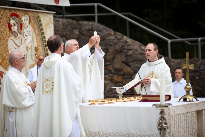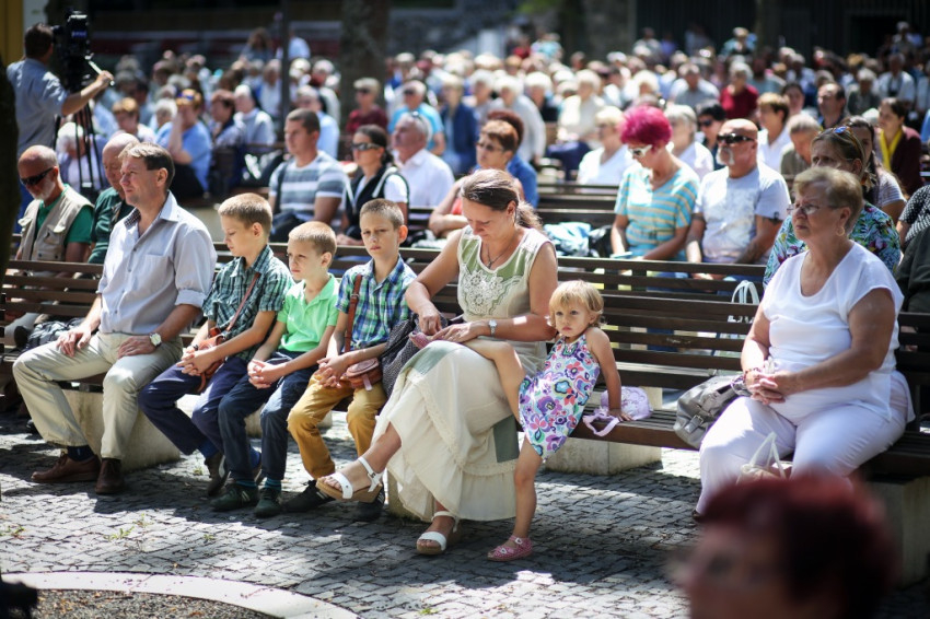 Jó látni, hogy akik tavaly még gyermekért jöttek könyörögni, idén már hálát adhatnak a gyermekáldásért – köszöntötte a szentmise elején a zarándokokat Kálmán Peregrin, a kegyhely július végén elköszönő igazgatója.