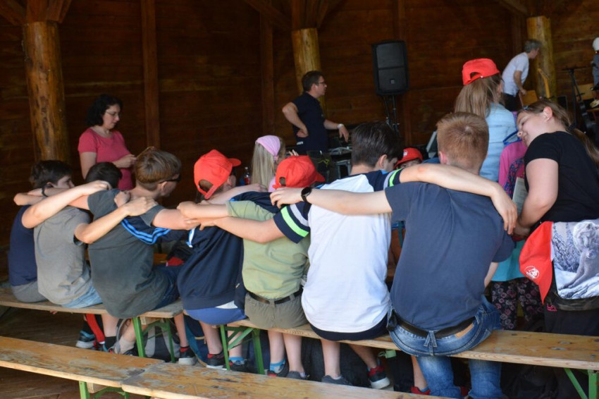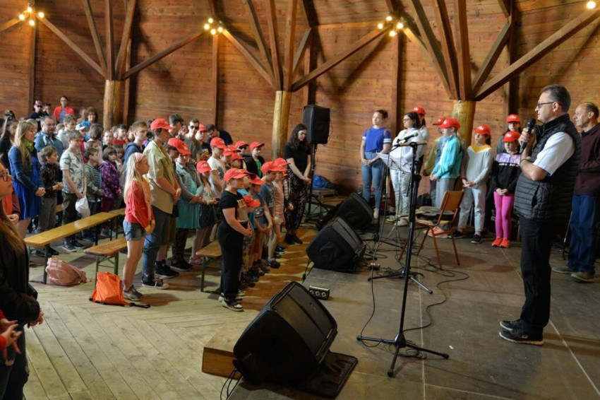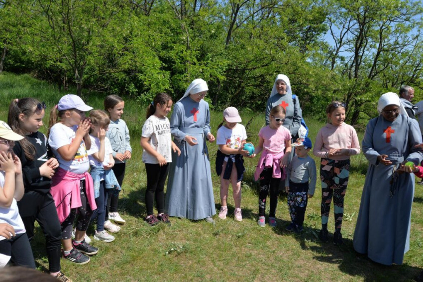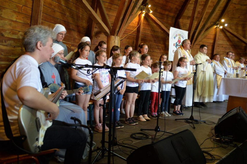 Tóth László egyházmegyei hitoktatási referens pap köszöntése után a debreceni Megtestesülés plébánia hittanosai rövid műsorral indították a gyereknap programját.