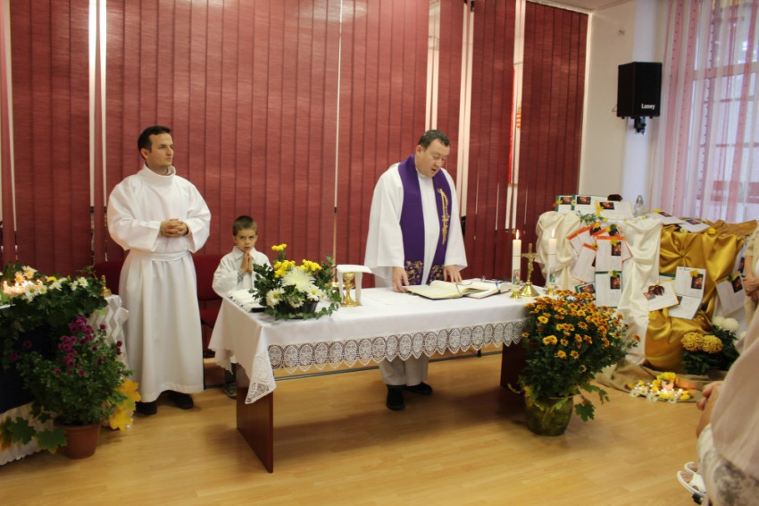 A szentmisét a szolgálat vezetője, Faragó Artúr mutatta be. Szentbeszédében kiemelte: a szentekkel és elhunyt szeretteinkkel egy nagy családot alkotunk. Jó dolog megemlékezni azokról, akik már nincsenek közöttünk, ugyanakkor törekednünk kell szeretetben élni már itt a földön is azokkal, akik körülvesznek minket: családtagokkal, rokonokkal, barátokkal, plébániai közösségünkkel, beteg társainkkal és a munkatársakkal. Fontos lenne, hogy ne a sírnál állva kelljen sajnálkoznunk, hogy már nincs lehetőségünk átölelni egymást, azaz kifejezni szeretetünket a másik ember iránt.