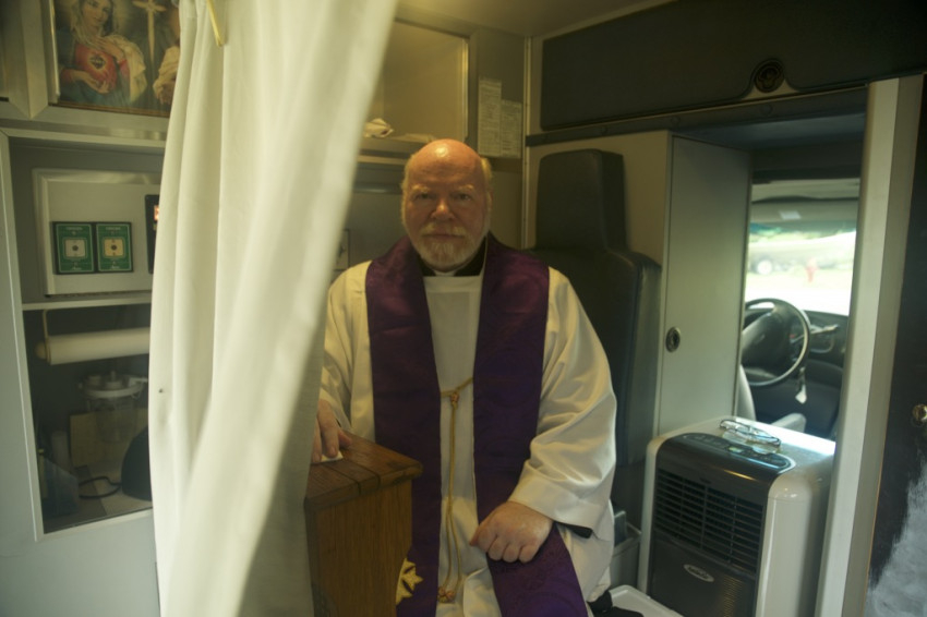 Champagne atya 2015 novembere óta járja Louisiana útjait a mobil gyóntatószékkel – ahogyan ő nevezi: „a spirituális sürgősségi mentővel”. Az elfüggönyözhető térdeplővel, szenteltvízzel, rózsafüzérekkel, bibliákkal és imakártyákkal felszerelt járművel éttermek és egészségügyi központok parkolóiban vagy helyi fesztiválokon lehet találkozni. (Útvonaláról egyébként előre is lehet tájékozódni a Community of Jesus Crucified honlapján.) Champagne atya azután hozta létre misszióját, hogy Ferenc pápa az irgalmasság évére készülve arról beszélt: a papság legyen aktívabb abban, hogy visszavezessék az embereket az Egyházba. Azóta a spirituális sürgősségi mentő megtett csaknem 13 ezer kilométert, és közel 200 különböző helyszínen, összesen több mint 4 ezer szentgyónást végeztek el benne.