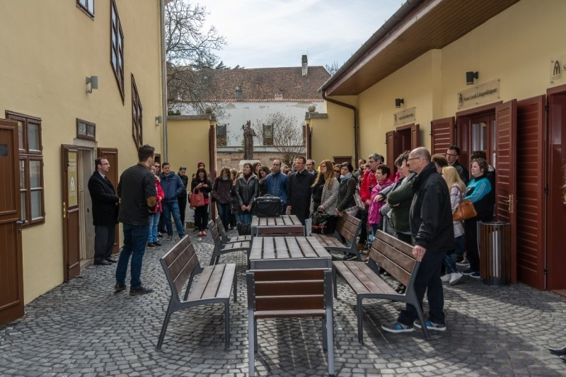 Udvardy György a győri zarándoklat keretében szentmisét mutatott be a Kármelhegyi Boldogasszony-templomban. A pécsi egyházmegyei munktársak ezt követően megtekintették a Szent László Látogatóközpont kiállítóterében a Könnyező Szűzanya-kegyképet és a Szent László-hermát, majd felkeresték a Nagyboldogasszony-székesegyházat, az Apor Vilmos-emlékkiállítást, valamint a püspöki palotát.