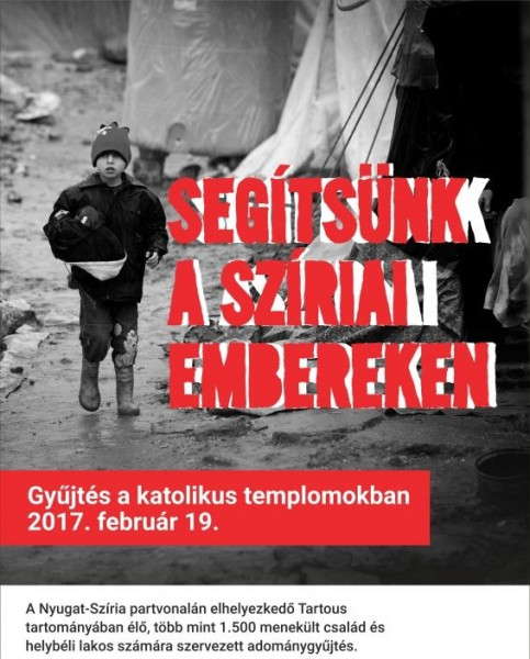 Szíria és a vele szomszédos országok a világ legsúlyosabb humanitárius válságának helyszínei, ahol folyamatosan megsértik az emberi jogokat. A már hat éve tartó szíriai háború példátlan szenvedéseket okozott és okoz a lakosságnak. 250 és 400 ezer között lehet azoknak a száma, akik a háborúban életüket vesztették, és több mint 11 millió embert űztek el otthonaikból – csak Szíriából körülbelül 4 millió ember menekült el. Legtöbben a szomszédos országokban találtak menedéket, de Szíria nyugati partvidéke is viszonylag biztonságos területnek számít. Tartúsz kormányzóság ma több mint 43 ezer belső menekültnek ad otthont. A családok kis lakásokat bérelnek, de a lakbér, az élelem, a gyógyszer és a gyermekek oktatásának költségei jóval meghaladják anyagi lehetőségeiket. E szükségre válaszolva szerveznek gyűjtést Románia katolikus templomaiban február 19-én.
