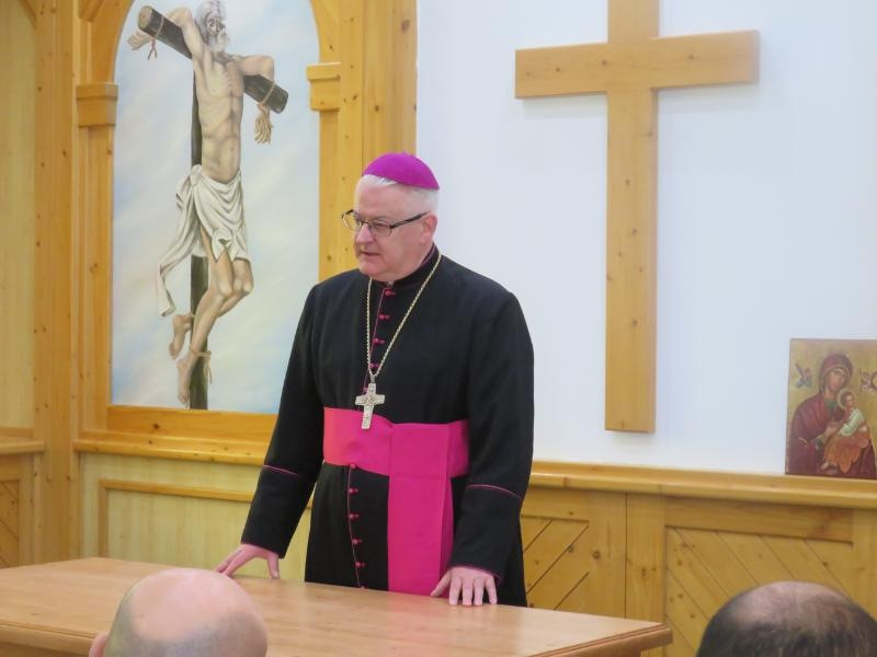 „Isten az, aki a görbe utakat egyenessé teszi” – idézte a mondást Spányi Antal székesfehérvári megyéspüspök, aki a bűnbánatról beszélt a fogvatartottaknak. „A Biblia első története a bűnbeesésé. Attól kezdve mindnyájan tapasztaljuk önmagunkban és a körülöttünk lévő világban, hogy számos kísértés leselkedik ránk. Ki az, aki bűn nélkül van? A bűn saját belső világunkban kezdődik, ott leszünk gyengék. Gyerekkorunkban megkaptuk a büntetést szüleinktől azért, amit nem lett volna szabad megtennünk. A közösségben elkövetett bűntettek után is megvan a büntetés ideje és helye. De megvan a bűnből való megsebzettségünk gyógyulásának helye is a szívünkben és lelkünkben. Ahogy Dizmásznak vagy a tékozló fiúnak is szüksége volt a bűnbánatra, úgy nekünk is ki kell mondanunk, vétkeztünk az Atya ellen. Így Jézus Krisztus által, aki jóvá tette bűneinket, a kegyelem erejében új életet nyerünk el.”