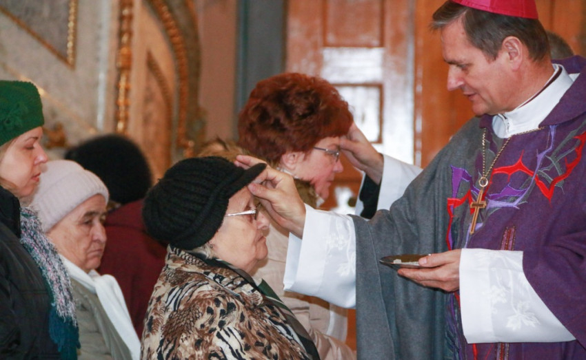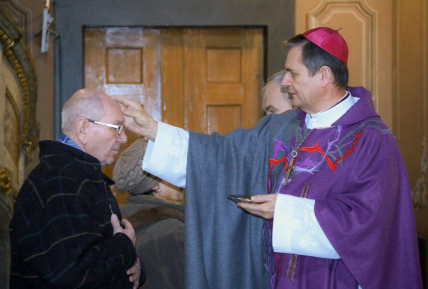 A hívek a szentbeszédet követően hamvazásra járultak a püspök, illetve jelen lévő paptestvérei elé.