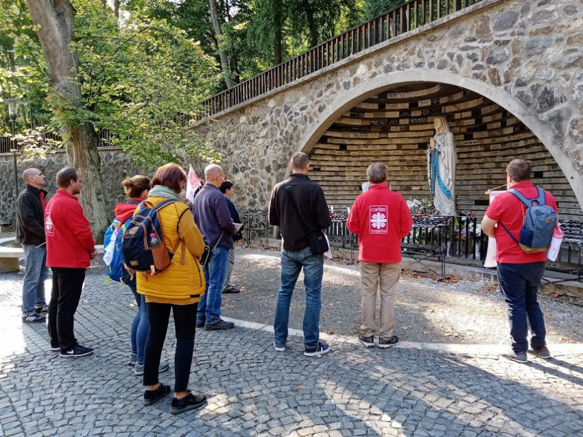 Szombaton további karitászos résztvevők csatlakoztak a csoporthoz Bagról, Szécsényből és Vizslásról. Kiss Balázs gyáli állandó diakónussal, a Váci Egyházmegyei Karitász lelkivezetőjével együtt a Lourdes-i Szűz Máriánál emlékgyertyát gyújtottak, hálát adva a zarándoklat kegyelmeiért, majd énekelve vonultak a Szűz Mária-forráshoz.