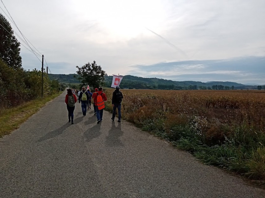 Nógrádmegyer után a csoport a szentolvasót imádkozva ért el a lucfalvai elágazáshoz, majd meredek utakon Márkházáig jutott, és folytatta útját a tájvédelmi körzetben.